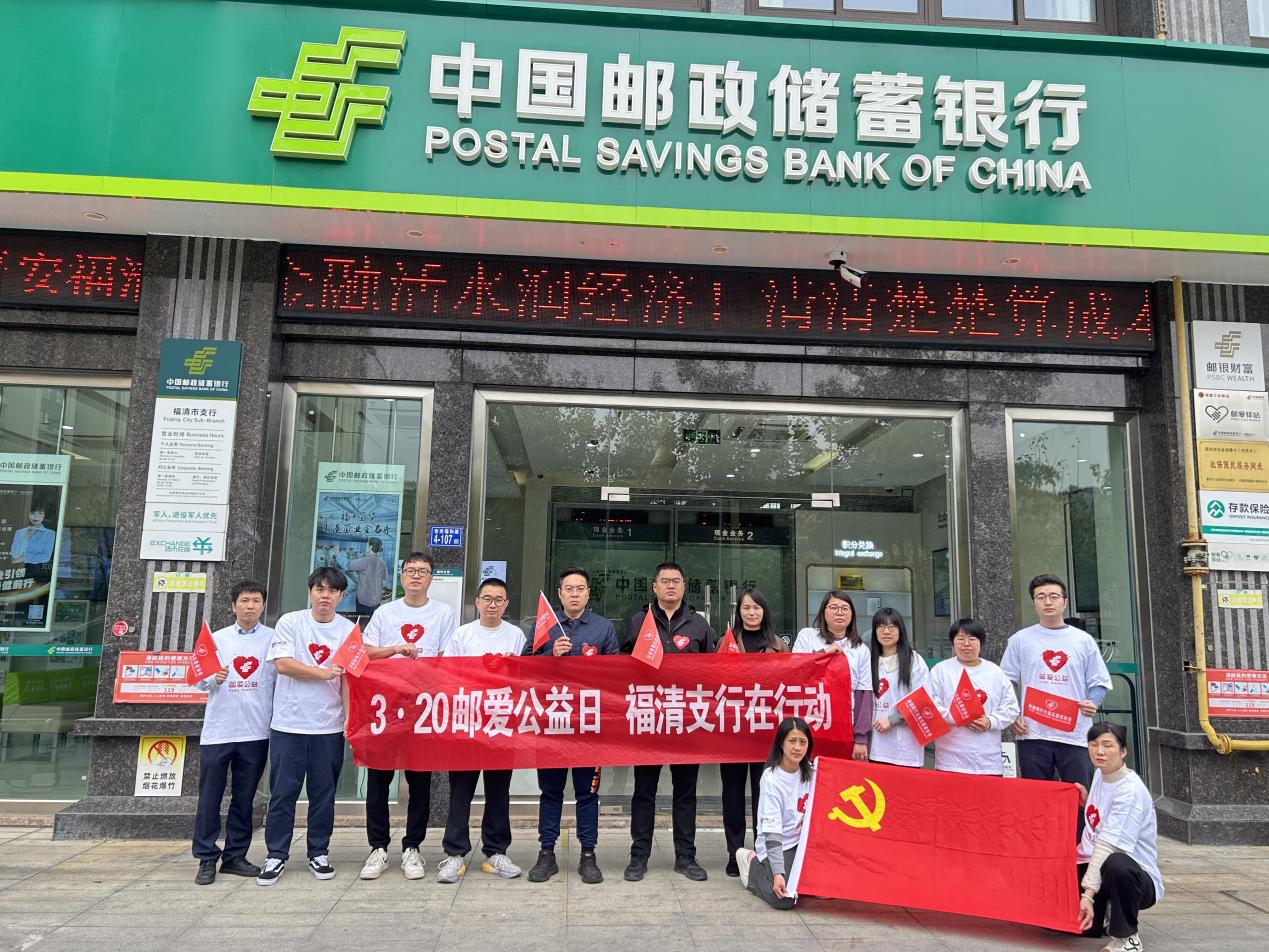 为践行社会责任,传递邮爱温暖,3月20日,邮储银行福清市支行组织开展“3·20邮爱公益日”系列活动,以多种形式凝聚公益力量,彰显金融担当。