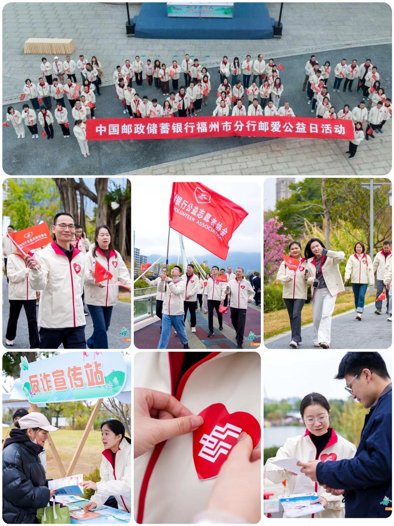 晋安湖畔,近百名员工代表统一着装、佩戴爱心胸贴,以公益健步与定点宣传的形式开展活动,热情邀请过往市民一同参与。活动现场,同步开展反诈宣传,向市民普及金融安全知识,守护大家的钱袋子,让更多人感受到“邮”爱温度,收获市民的广泛关注与一致好评。