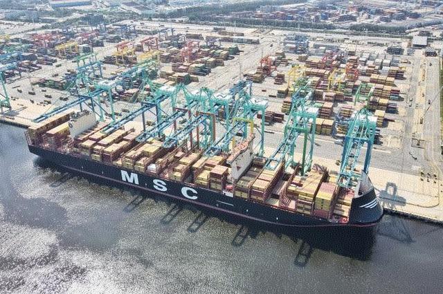 全球首个“智慧零碳”码头——天津港第二集装箱码头高效完成大型集装箱船装卸作业。(资料照片)