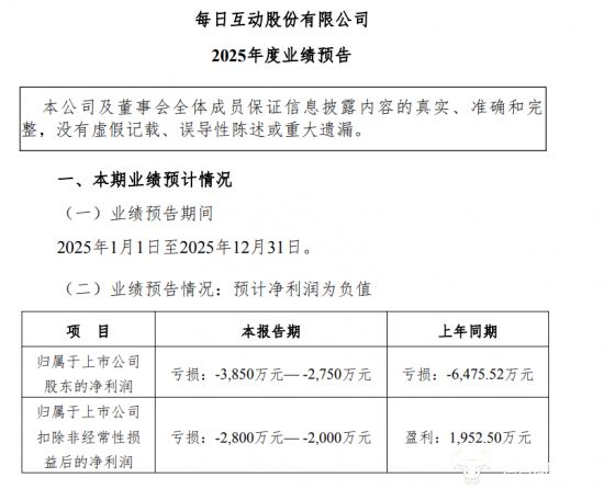 前不久,每日互动发布了2025年业绩预告,预计过去一年净利润仍为负,引发广泛关注。要知道,这已是每日互动连续第三年出现亏损了。