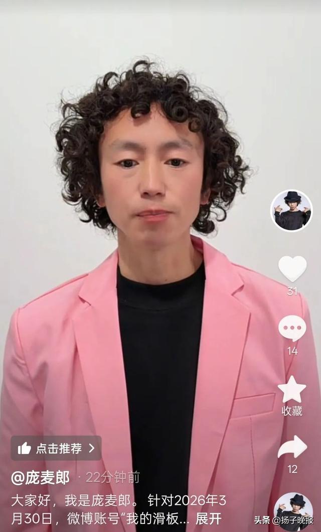 之后,庞麦郎也在个人抖音上发布了声明,他说道,针对2026年3月30日,微博账号“我的滑板鞋庞麦郎”转发李荣浩相关内容、并提及华晨宇版权一事,本人在此郑重声明:该微博账号并非本人使用,相关内容也并非我本人发布。本人目前在新浪微博没有任何账号,请各位网友切勿轻信,避免上当受骗,感谢大家的理解与关注。