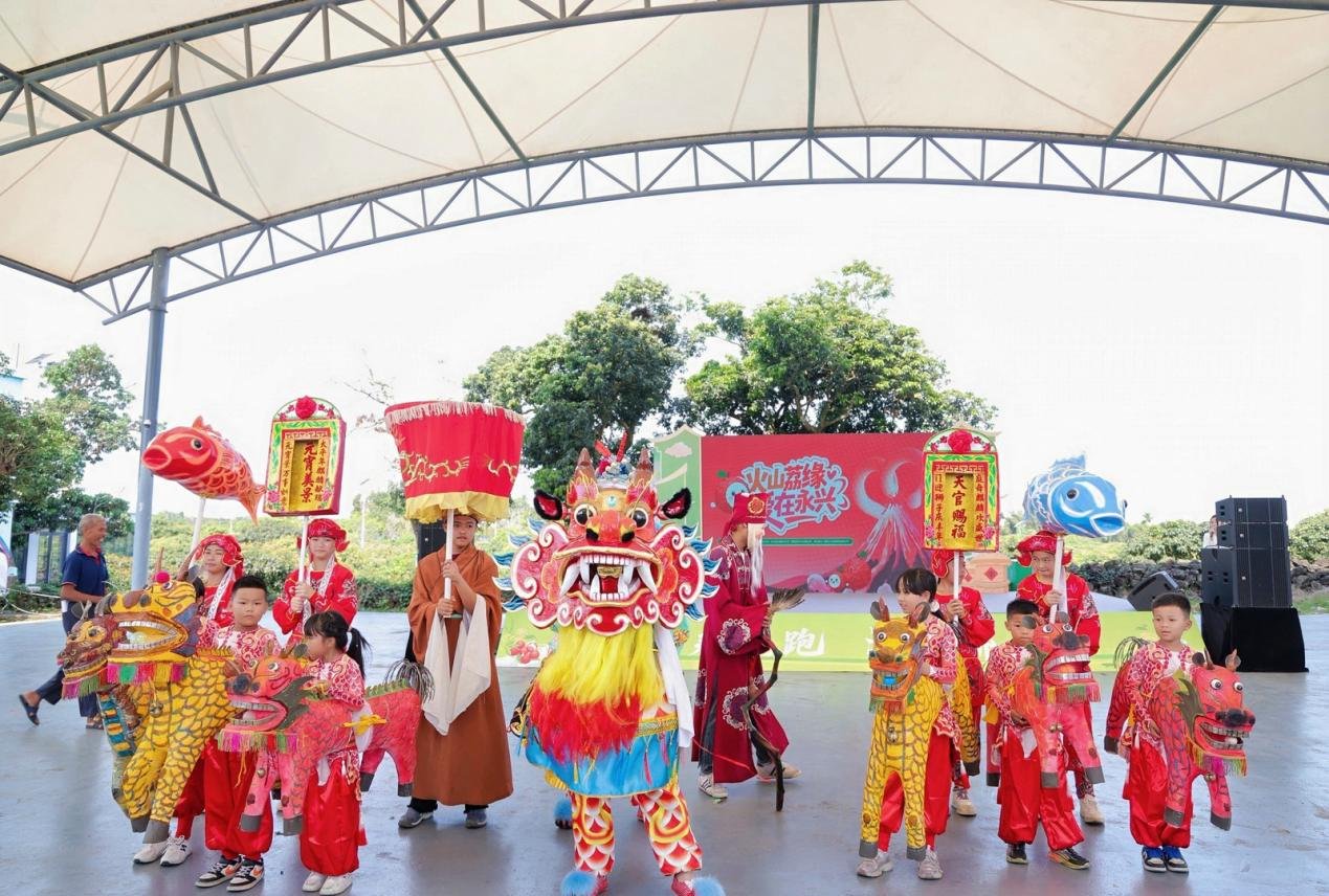 上午10时许,活动在一段沉浸式短片中正式开篇。镜头下,永兴镇万年火山岩的奇特地貌、漫山遍野的荔枝花海、古村落的乡土韵味与果农丰收的喜悦画面交替呈现,全方位展现了该镇立足火山资源禀赋、深耕荔枝特色产业的发展成果,让现场观众提前领略了荔枝月的精彩亮点,更感受到永兴镇在推动“农业+文化+体育+旅游”融合发展的坚定决心。