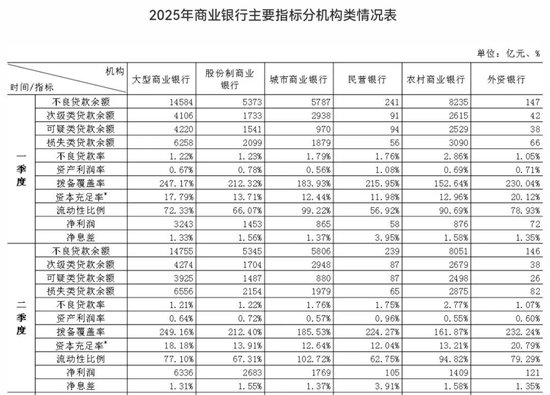 2023年、2024年、2025年上半年,北京银行净利润同比增长分别为3.49%、0.81%、1.12%,不良贷款率分别为1.32%、1.31%、1.30%,拨备覆盖率分别216.78%、208.75%、195.74%,贷款损失准备分别为576.01亿元、603.28亿元、608.26亿元。