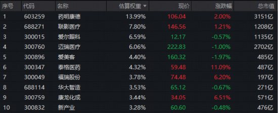 具体来看医疗板块表现,CXO概念强势领涨,泰格医药飙涨逾11%,康龙化成涨6.51%,巨头药明康德涨2%。医械股分化明显,福瑞股份大涨6.2%,迈瑞医疗跌1%。