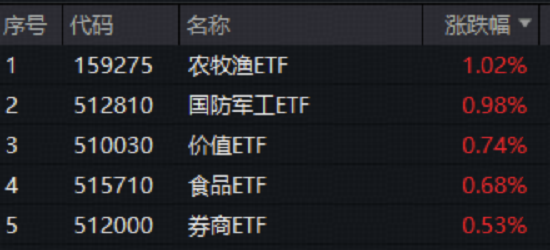 盘面上,商业航天、卫星互联网等题材持续强势,航天电子涨停创历史新高,国防军工ETF(512810)场内涨幅逆市摸高1.54%,价格创近2个月新高;政策力挺消费复苏,茅台两日涨近百元,批价逼近1600元,食品ETF(515710)场内涨幅盘中上探1.36%,近5日吸金6561万元;八成上市券商年内至少分红两次,近90亿元红利在路上,398亿顶流券商ETF(512000)场内价格盘中最高涨逾1.7%。