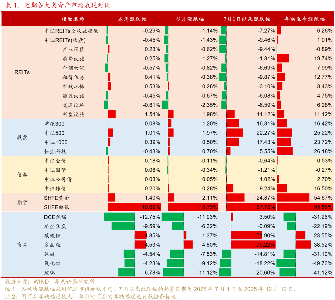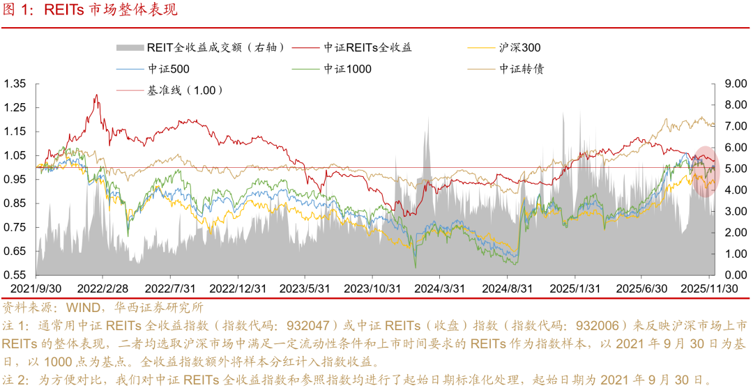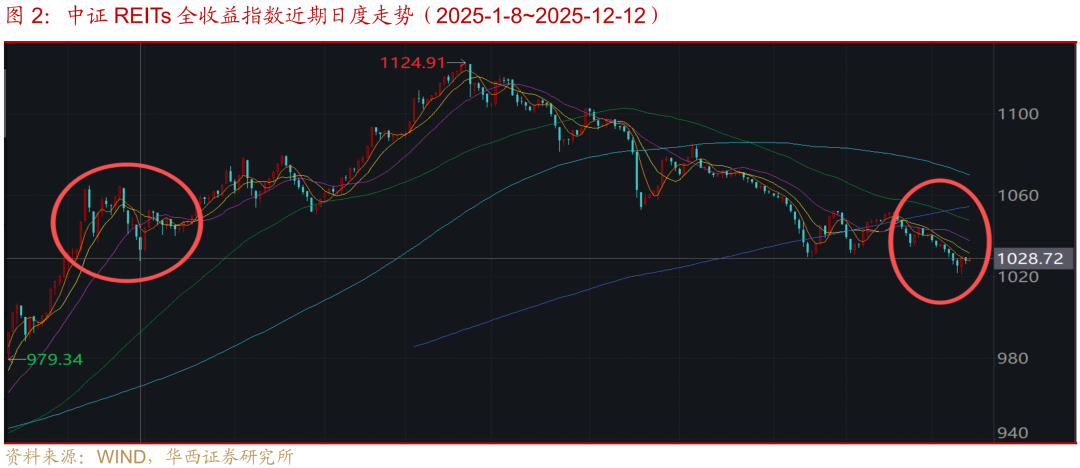 中金重庆两江本周强势反弹。近期下跌一方面受出租率和收缴率等基本面数据影响(根据项目公告,三季度末出租率为87.81%,租金收缴率为66.95%。截至2025年11月27日,2025年前三季度累计收缴率为90.79%,加大了催缴力度),另一方面遭受了“解禁冲击”。考虑到重庆市撤销江北区、渝北区,设立两江新区,两江新区“升级”为行政区,调整后两江新区继续保持经济开发建设的首位度和优先级,且中金重庆两江已设置收益分配调节机制,可以继续关注。