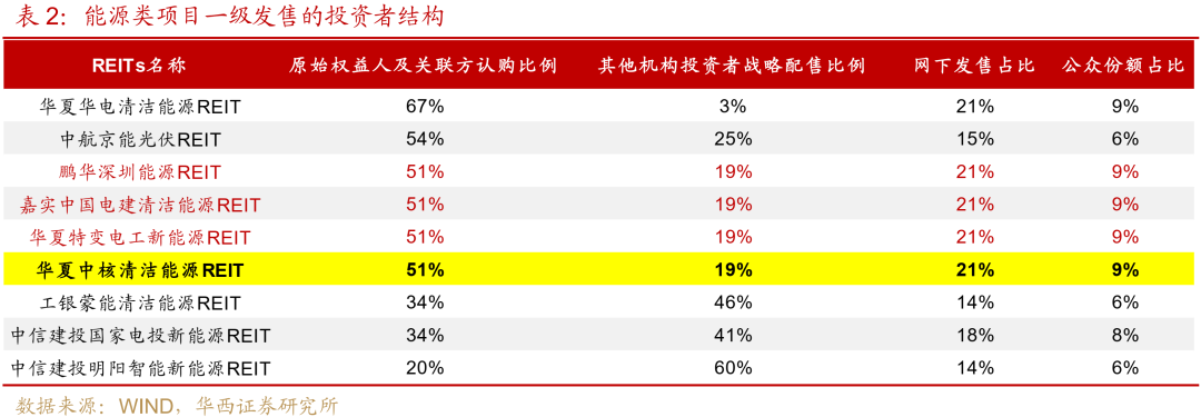 本次发售中,原始权益人或关联方拟认购51%,其他战略投资者拟认购19%,网下询价发售21%,公众投资者公开发售9%。在目前已上市的能源类项目中,一级发售投资者结构与鹏华深圳能源、嘉实中国电建清洁能源、华夏特变电工新能源相同。