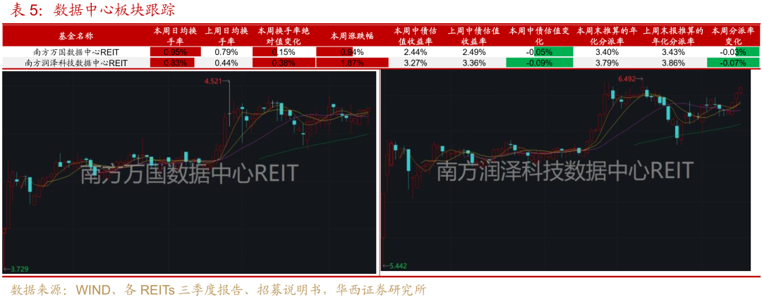 数据中心(IDC)板块本周表现相对出色,润泽科技数据中心、万国数据中心分别收涨1.87%、0.94%,日均换手率也明显提升,目前动态分派率分别为3.79%、3.40%,可根据AI算力板块行情走势进行操作。