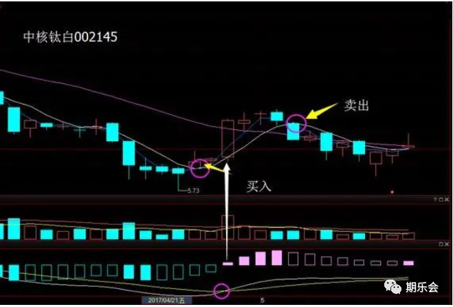 上图显示的是中核钛白一波小反弹行情,根据三五均线进行操作,我们可以在非常低的位置介入,虽然也没能卖在最高位,但只要卖得及时还是有一定的收益的。若是根据MACD的金叉死叉信号操作,只能是大涨的当天追高买入,并且现在还一直套在里面。