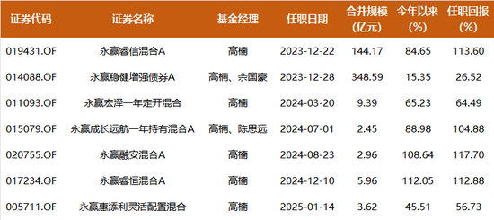 10月27日,永赢基金旗下知名基金经理高楠管理的多只公募产品披露2025年三季报。