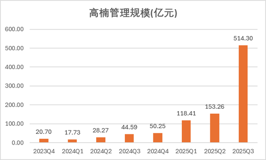 截至三季度末,其管理的公募产品总规模突破500亿元,达到514.3亿元,较二季度的150亿元大幅提升,