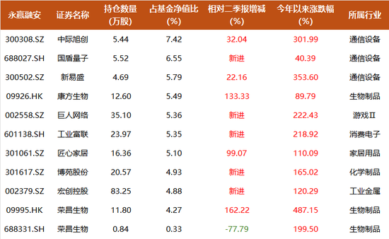 永赢融安主要聚焦通信、医药生物行业,分别占19.76%和10.09%;