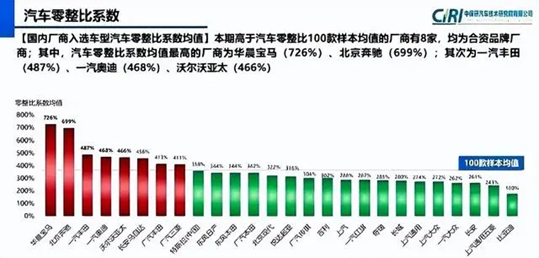 根据中保研公布的第18期汽车零整比体系报告,豪华车与合资车的零整比明显偏高,这些显然都是4S店的重要利润来源,完全转型新能源的比亚迪则排名倒数第一。