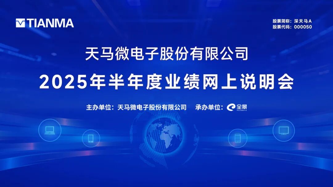 天马微电子股份有限公司拟定于2025年9月5日(星期五)15:00-16:30举行2025年半年度业绩网上说明会,敬请关注!