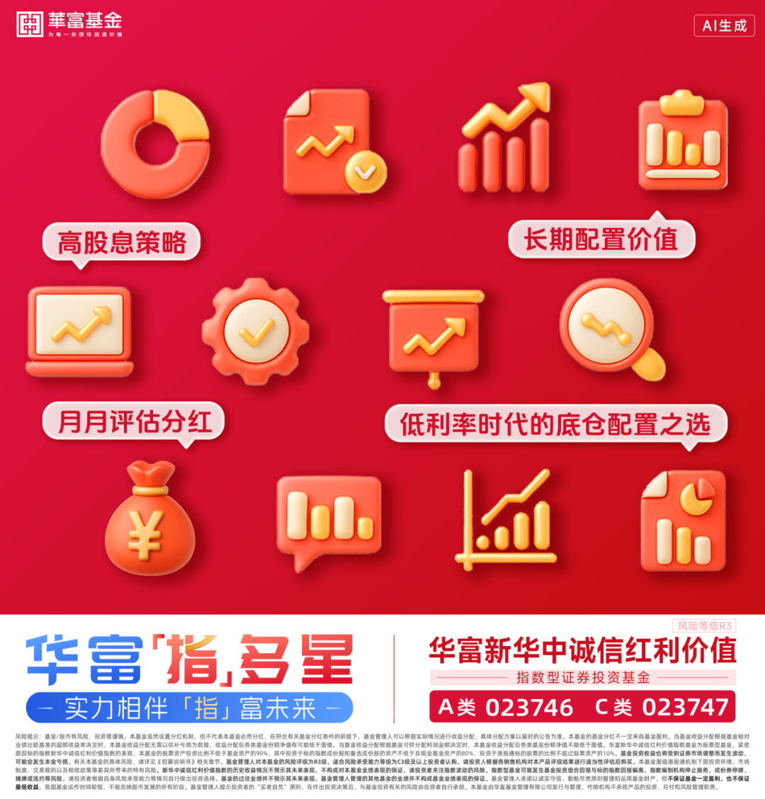 华富新华中诚信红利价值指数基金(023746/023747)密切跟踪新华中诚信红利价值指数,投资者可以结合该指数的特点对该基金采取适合自身的投资模式,比如作为表达自身风格判断的工具(防御属性的红利)或者作为长期持有的工具(长期表现突出的红利)。