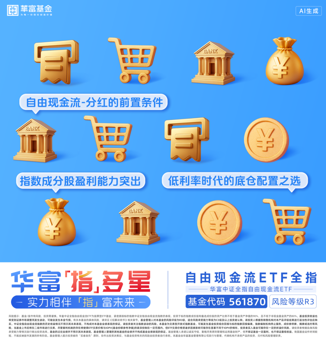 华富新华中诚信红利价值指数基金为股票型基金,紧密跟踪标的指数新华中诚信红利价值指数的表现,本基金的股票资产投资比例不低于基金资产的90%,其中投资于标的指数成份股和备选成份股的资产不低于非现金基金资产的80%,投资于港股通标的股票的比例不超过股票资产的10%。基金投资收益也将受到证券市场调整而发生波动,可能会发生本金亏损。有关本基金的具体风险,请详见《招募说明书》相关章节。基金管理人对本基金的风险评级为R3级,适合风险承受能力等级为C3级及以上投资者认购。本基金面临港股通机制下因投资环境、市场制度、交易规则以及税收政策等差异所带来的特有风险。新华中诚信红利价值指数的历史收益情况不预示其未来表现,不构成对本基金业绩表现的保证,请投资者关注指数波动的风险。本基金为开放式指数基金,可能发生基金投资组合回报与标的指数回报偏离,指数编制机构停止服务,成份券停牌、摘牌或违约等风险。华富中证全指自由现金流交易型开放式指数证券投资基金为股票型基金,紧密跟踪标的指数中证全指自由现金流指数的表现,本基金投资于标的指数成份股和备选成份股的资产比例不低于基金资产净值的90%,且不低于非现金基金资产的80%。基金投资收益也将受到证券市场调整而发生波动,可能会发生本金亏损。有关本基金的具体风险,请详见《招募说明书》相关章节。基金管理人对本基金的风险评级为R3级,适合风险承受能力等级为C3级及以上投资者认购。中证全指自由现金流指数的历史收益情况不预示其未来表现,不构成对本基金业绩表现的保证,请投资者关注指数波动的风险。本基金为交易型开放式指数基金,可能发生基金投资组合回报与标的指数回报偏离,指数编制机构停止服务,成份券停牌、摘牌或违约等风险,当基金上市后将在二级市场进行交易,尽管套利机制的存在将使得ETF交易价格与IOPV(基金份额参考净值)的差异控制在一定范围内,但ETF交易价格受诸多因素影响可能存在显著不同于IOPV的情形,投资者买入基金可能存在一定的折溢价风险。请投资者注意,不同基金销售机构对本基金的风险评级可能不一致,请根据各销售机构作出的风险评估以及匹配结果进行购买,并详细阅读本基金的《基金合同》、《招募说明书》、《产品资料概要》等法律文件,了解本基金风险收益特征等具体情况,根据自身风险承受能力等情况自行做出投资选择。基金的过往业绩并不预示其未来表现,基金管理人管理的其他基金的业绩并不构成基金业绩表现的保证。基金管理人承诺以诚实守信、勤勉尽责原则管理和运用基金财产,但不保证基金一定盈利,也不保证最低收益。我国基金运作时间较短,不能反映股市发展的所有阶段。基金管理人提示投资者的“买者自负”原则,在作出投资决策后,与基金投资有关的风险由投资者自行承担。本基金由华富基金管理有限公司发行与管理,代销机构不承担产品的投资、兑付和风险管理职责。