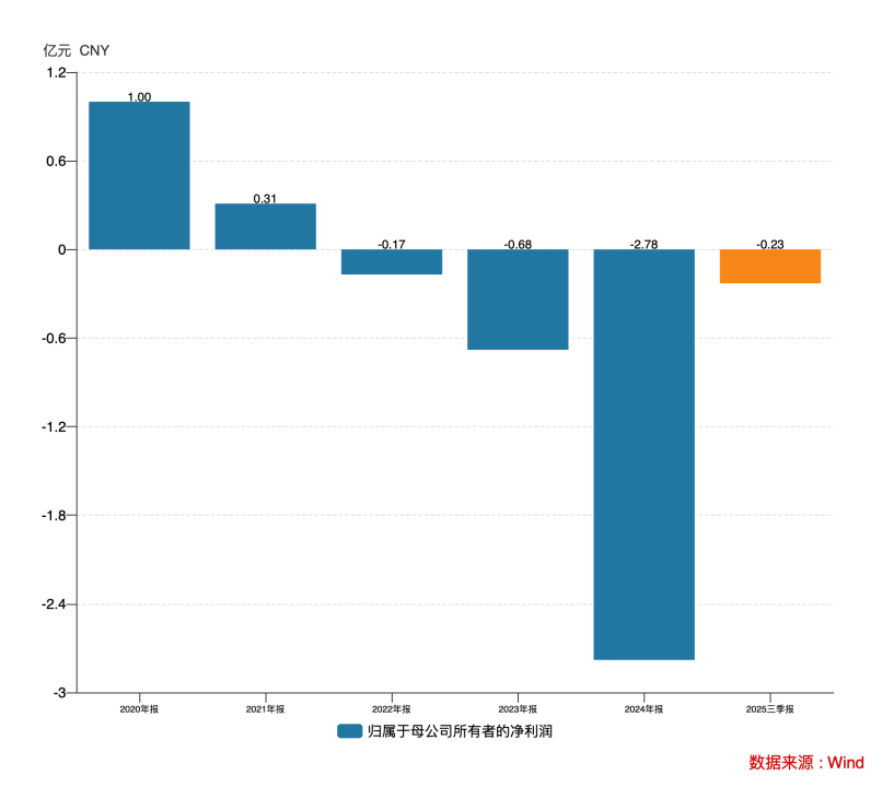 除此之外,公司2022-2024年及2025年前三季度经营现金流分别为-1.23、0、-0.36、-1亿元,也呈现持续流出的态势。