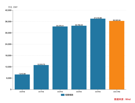 因此公司短期借款同步激增,从2020年不到8000万元增至2022年后稳定在3.3-3.8亿元区间。