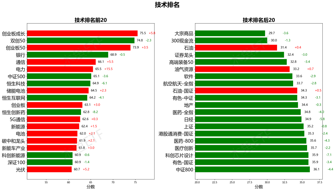 技术上仍然是创业板、银行、通信、电力等领先,石油、软件、证券等靠后。