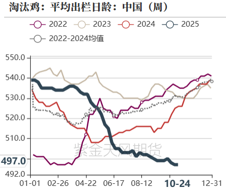 9月在产蛋鸡存栏仍在历史同期高位,从10月淘鸡节奏以及6月鸡苗补栏情况来看,10月在产蛋鸡存栏数据呈现环比下滑趋势,但同比仍在较高位水平。现阶段淘鸡日龄已经降至历史低位,加上可待淘老鸡占比降低,大多数养殖企业属于被动淘鸡,一旦现货价格上涨,养殖端惜淘情绪将增加,加上集团以及规模化企业利用资本扩张的脚步并没有停止,因此供需状况短时难以出现有效的改变,需要继续维持一段低价区才能淘汰一批养殖成本较高的低效能企业,让行业供需走向平衡,
