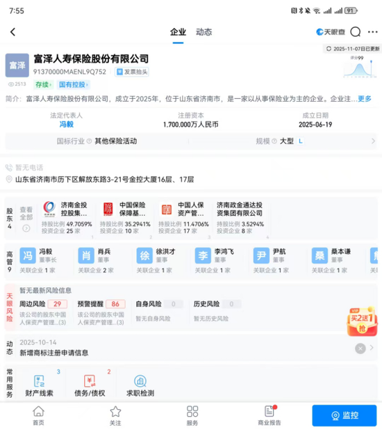 近期,富泽人寿的工商登记信息也已更新,其公司地址、股东信息、9名主要高管成员信息均已公开,显示其成立日期为2025年6月19日。