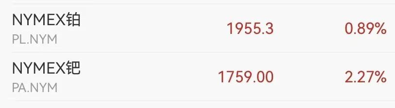 截至20:50,NYMEX铂、NYMEX钯明显回落,
