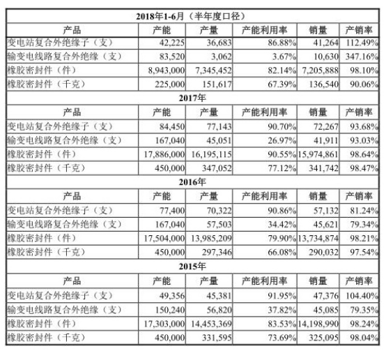据招股书介绍,募投项目“变电站复合绝缘子智能工厂建设项目”系公司基于现有主要产品的扩产及制造水平升级。2015年至2018年1-6月,神马电力变电站复合外绝缘产能利用率分别为91.95%、90.86%、90.70%、86.88%,产能利用率下滑。