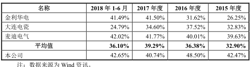 其中,变电站复合外绝缘的毛利率呈波动趋势,维持在39.79%以上;橡胶密封件的毛利率较稳定,维持在42%到52%的范围之间;输配电线路复合外绝缘的毛利率变动较大,2015年度、2016年度、2017年度和2018年1-6月毛利率分别为5.51%、55.39%、18.27%和42.63%,其毛利率及销售占比的变动对2018年1-6月、2017年度和2016年度综合毛利率的影响分别为1.18%、-7.90%和8.27%。