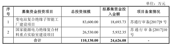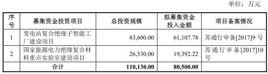 据招股书介绍,“变电站复合绝缘子智能工厂建设项目”系公司基于现有主要产品的扩产及制造水平升级。项目将大幅提升公司复合空心绝缘子的产能和产量。项目产品包括110kV-500kV变电站复合绝缘子,达产后预计每年增产各类复合绝缘子共计150263支。