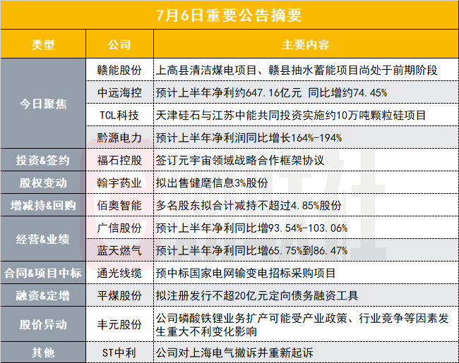 黔源电力公告,预计上半年净利润2.99亿元-3.32亿元,同比增长164%-194%。公司2022年上半年来水较上年同期偏多,本年发电量53.72亿千瓦时,上年同期发电量33.52亿千瓦时,发电量增加20.2亿千瓦时,使发电收入及发电利润增加。小财注:Q1净利0.88亿元,据此计算,预计Q2净利2.11亿元-2.44亿元,环比增长140%-177%。