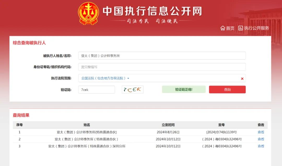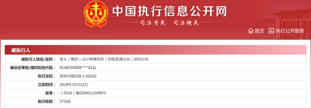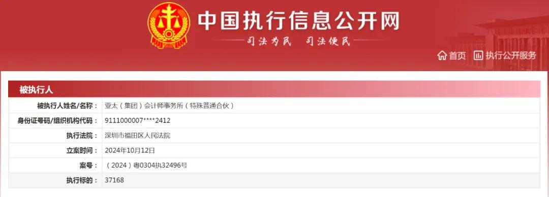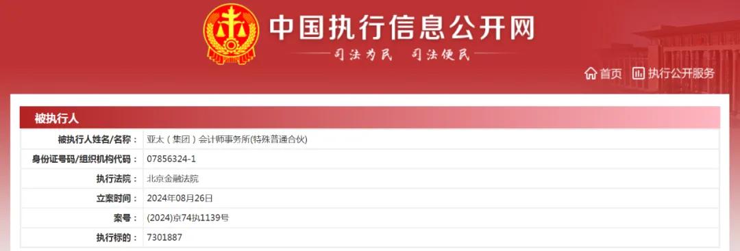 亚太(集团)会计师事务所被列为被执行人