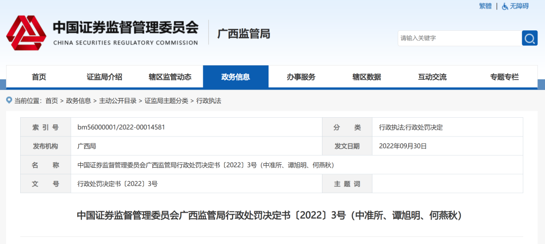 中国证券监督管理委员会广西监管局行政处罚决定书〔2022〕3号(中准所、谭旭明、何燕秋)