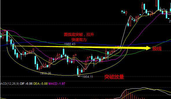圆弧底是重要的反转形态之一,其反转的趋势是由下而上缓慢攀升形成,呈现出一个圆弧形走势,当价格维持一段缓慢攀升后,接着突破盘整或压力区并走出加速上升行情。
