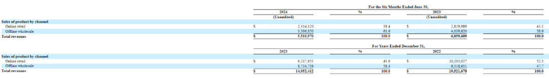 对于收入下滑的原因,索芙特在招股书中表示,“自2022年5月起,我们开始通过电商平台、直播、明星和社交媒体影响力推荐等方式进行促销,吸引了大量在线客户,并在2022年实现了销售额的大幅增长。但2023年和2024年,由于网上购物环境竞争日益激烈,我们的网上零售额有所下降。”