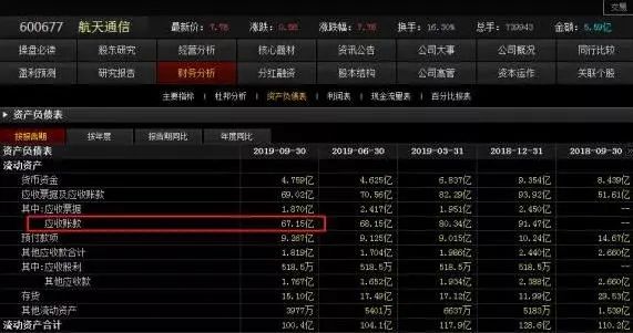第三种是应收账款减值,也称为信用减值,比如之前暴雷的航天通信,三季报显示应收账款67.15亿,总资产是137.6亿,占比高达45%,说明接近有一半的资产都存在减值的风险!