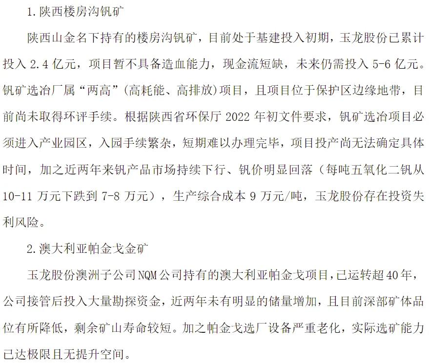 陕西楼房沟钒矿、澳大利亚帕金戈金矿、辽宁硅石矿等3个矿山构成的公司经营主体“整体运营停滞,现金流紧缺,基本不具备自我造血能力,存在无法持续经营的风险。”