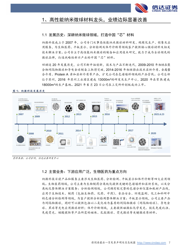 1.高性能纳米微球材料龙头,业绩边际显著改善。