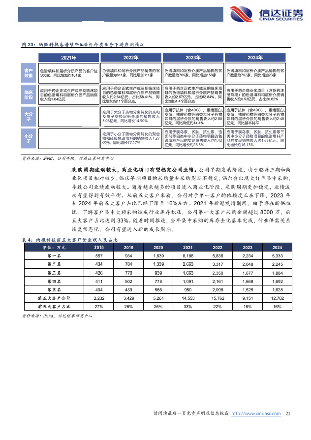 2)商业化放量机遇:色谱填料和层析介质的用量与项目阶段相关,从临床一期到临床二期到临床三期到商业化呈现逐级放大趋势,和商业化变更相比,从临床早期培育的管线客户粘性更强,从小试研发到放大生产,全面配合客户完成工艺验证及生产应用,一路陪伴客户成长。我们认为,近年来公司客户数量不断积累,临床阶段不断后移,目前储备大量临床中后期项目,悉心培育的管线陆续进入回报期,未来存在显著的商业化放量机遇。