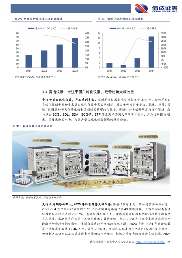 3)赛谱仪器:赛谱仪器致力于开发用于蛋白、抗体、疫苗、核酸、诊断原料等大分子生物制品领域的精密纯化设备,产品达到国内领先、国际先进的水平,为国产蛋白纯化设备领域的龙头企业。