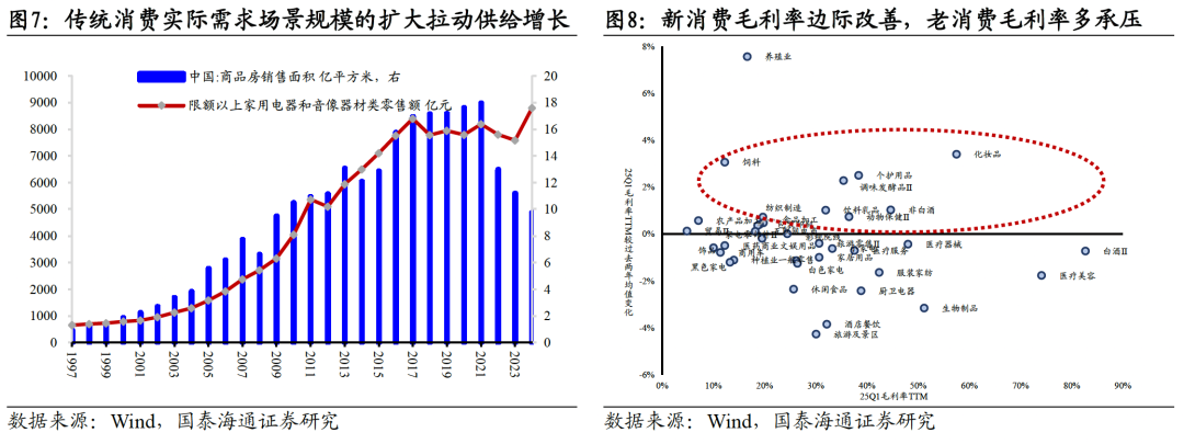 消费内部复苏呈现结构性分化。在供给端产能压力持续,叠加需求侧财富效应减弱以及外需扰动的背景下,传统消费板块毛利率环比下滑,在商品消费刺激政策推动下呈现出“以价换量”的特征。相较之下,新消费品复苏势头较为强劲,且毛利率出现扩张,反映出其目标人群与传统消费已存在明显差异,二者复苏力度出现分化。