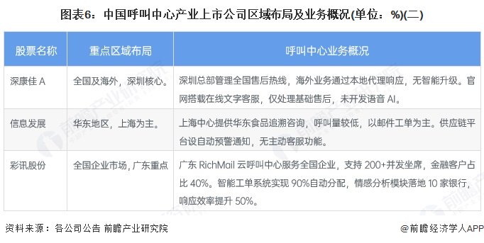 呼叫中心上市公司主要布局在人口较多,经济发达,政务处理较多的地区,例如一线城市,东部沿海地区等。业务包括税务、订单查询、市民服务、金融业务、教育咨询、医疗呼叫、维修处理等。