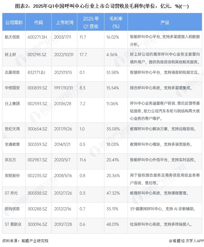 从营收来看,大部分呼叫中心2025年一季度的毛利率在10%-45%,整体来看盈利能力较好。这些企业营收集中在0-30亿元。营收方面,闻泰科技遥遥领先,2025年一季度已达到131亿元,但同比增速下降。毛利率方面,派瑞股份毛利率高达58.4%,几乎是行业中上市公司最高。公司在控制成本和提高效率处于行业领先地位。