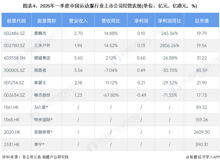 注:1)市值统计时间截至2025年5月20日;2)截至2025年5月26日,361度、特步国际、安踏体育、李宁未披露2025年一季度营收数据,且市值单位为亿港元。