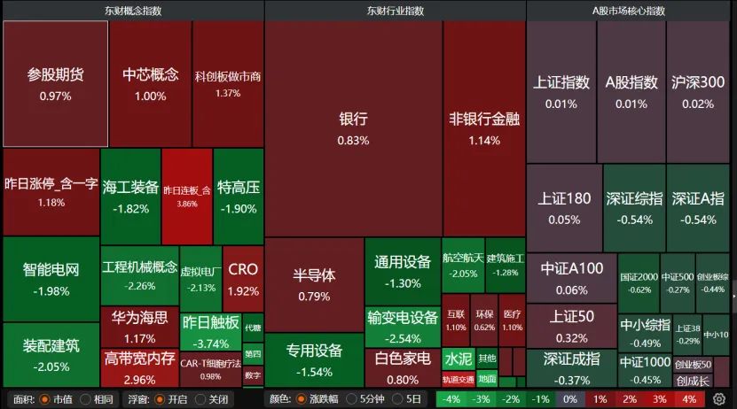 中芯概念、科创板做市商、高带宽内存板块领涨,但海工装备、特高压板块跌近2%。