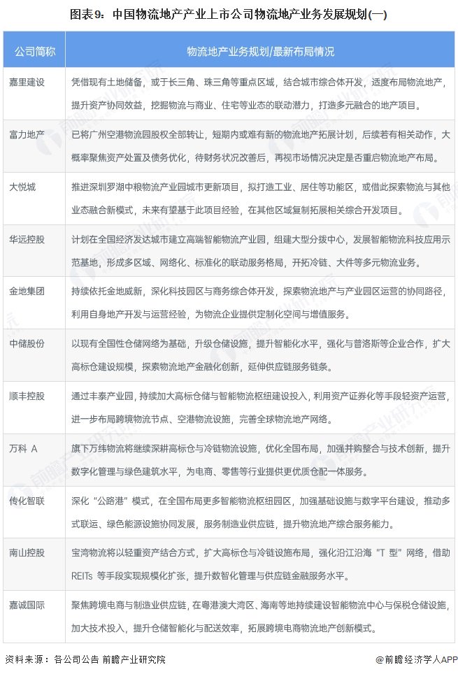 物流地产产业上市公司业务规划对比