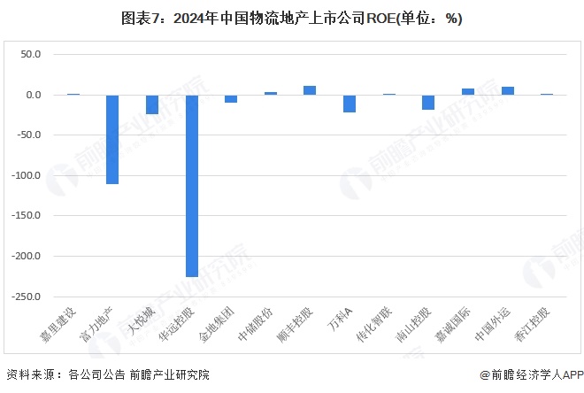 物流地产行业ROE大部分变现较差。顺丰控股、中国外运、嘉诚国际的2024年ROE表现较好,均超8%,显示出较强的股东权益收益水平与资金运用效率。而富力地产、华远控股、大悦城、万科A等企业ROE为负,盈利能力欠佳,经营面临挑战,需提升赚钱效率。