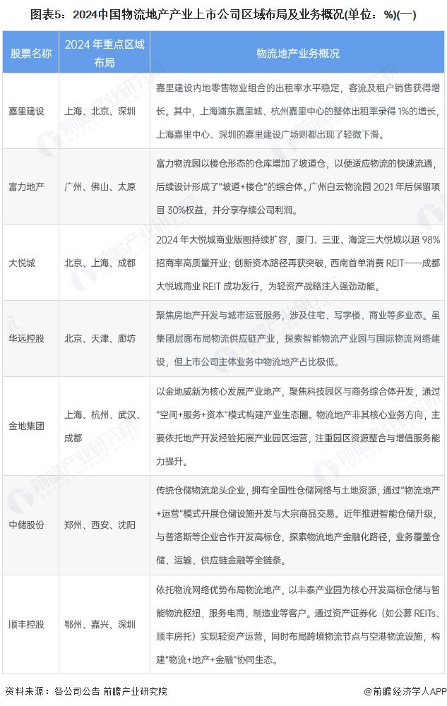 物流地产产业上市公司区域布局对比