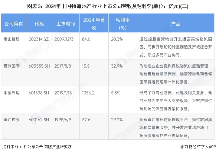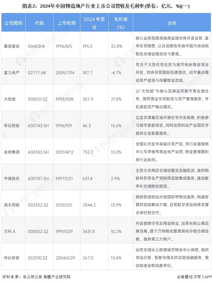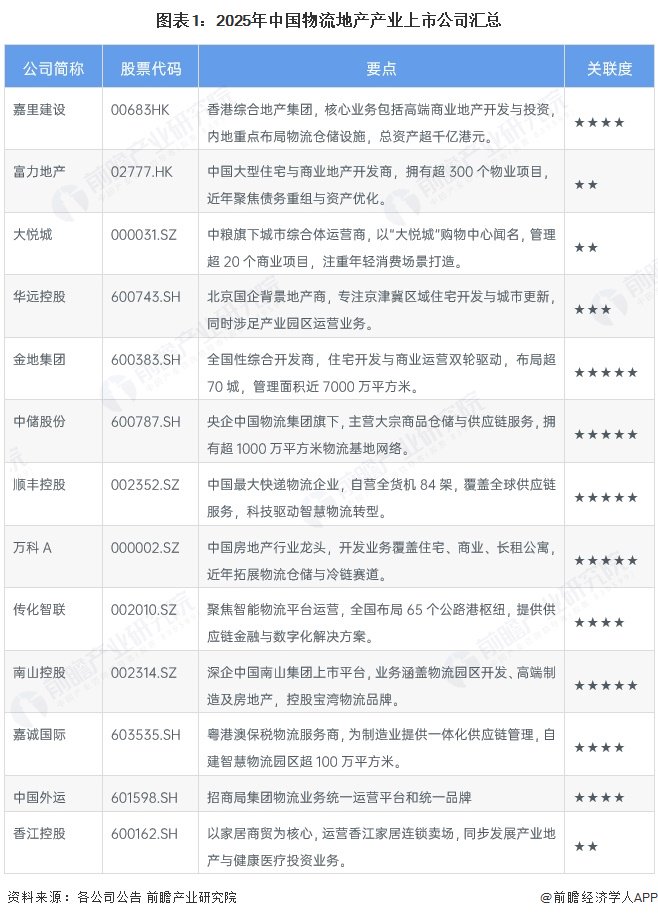 物流地产行业上市公司汇总