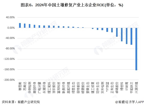 土壤修复行业企业2024年ROE即净资产收益率中,各家企业的盈利能力差异明显,且亏损企业。