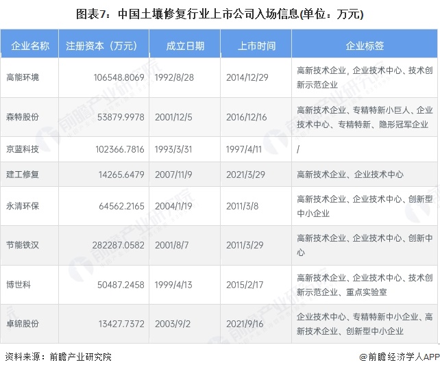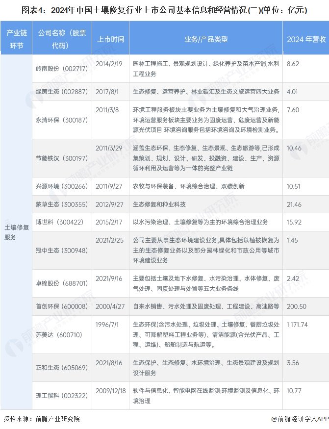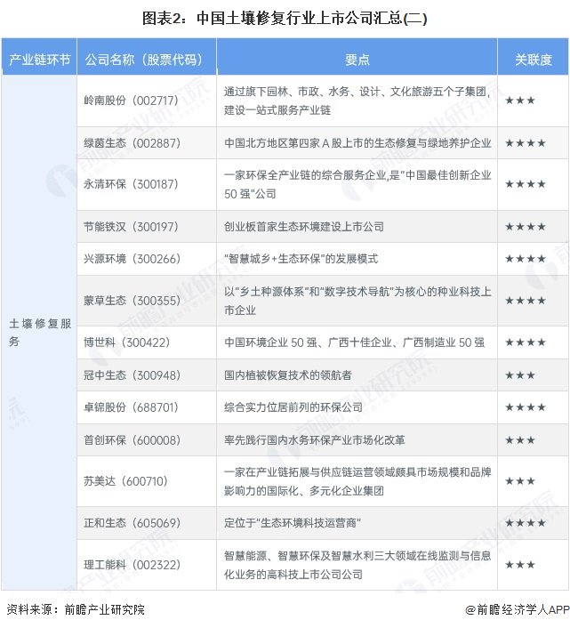 本文核心数据:土壤修复上市公司基本信息;土壤修复上市公司业务布局;土壤修复上市公司业绩表现